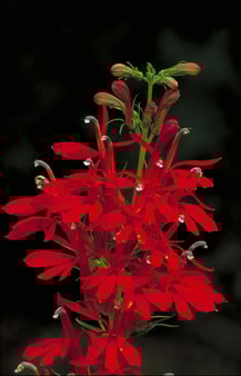 Cardinal Flower is a perennial herbaceous plant that grows up to 4 ft tall and is found in wet places, streambanks, and swamps.